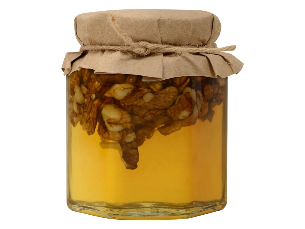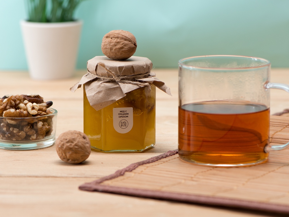 Мед и орехи прекрасно сочетаются друг с другом, образуя оригинальный и запоминающийся вкус. Медовый десерт идеально подойдет для чаепития, поэтому подобный подарок можно также дополнить чаем. Так как продукт состоит из натуральных ингредиентов, возможно его засахаривание.
