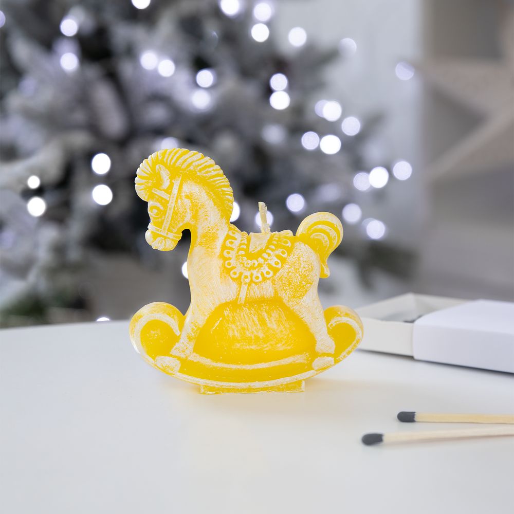 Свеча фигурная «Лошадка-качалка», желтая купить оптом и в розницу с нанесением логотипа в Уфе