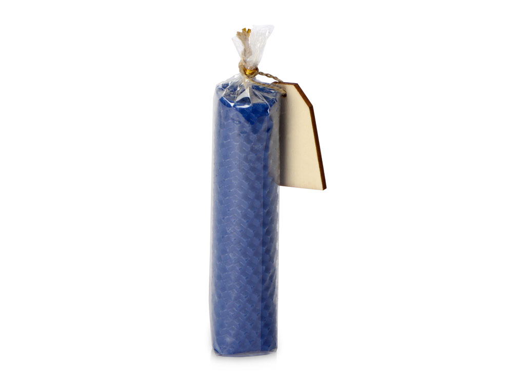 Свеча изготовлена вручную из крашеной вощины. Вощина - это рифленая пластина изготовленная из воскового сырья, которая имитирует донышки сотовых ячеек.