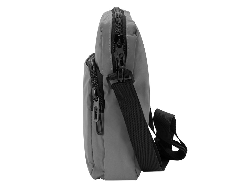 Светоотражающая сумка через плечо обеспечит дополнительную безопасность в темное время суток. Внутренний карман основного отделения на застежке-липучке предназначен для хранения ценных вещей. Наружный карман на молнии для хранения мелочей. Ремень на плечо 140 см регулируется по длине.