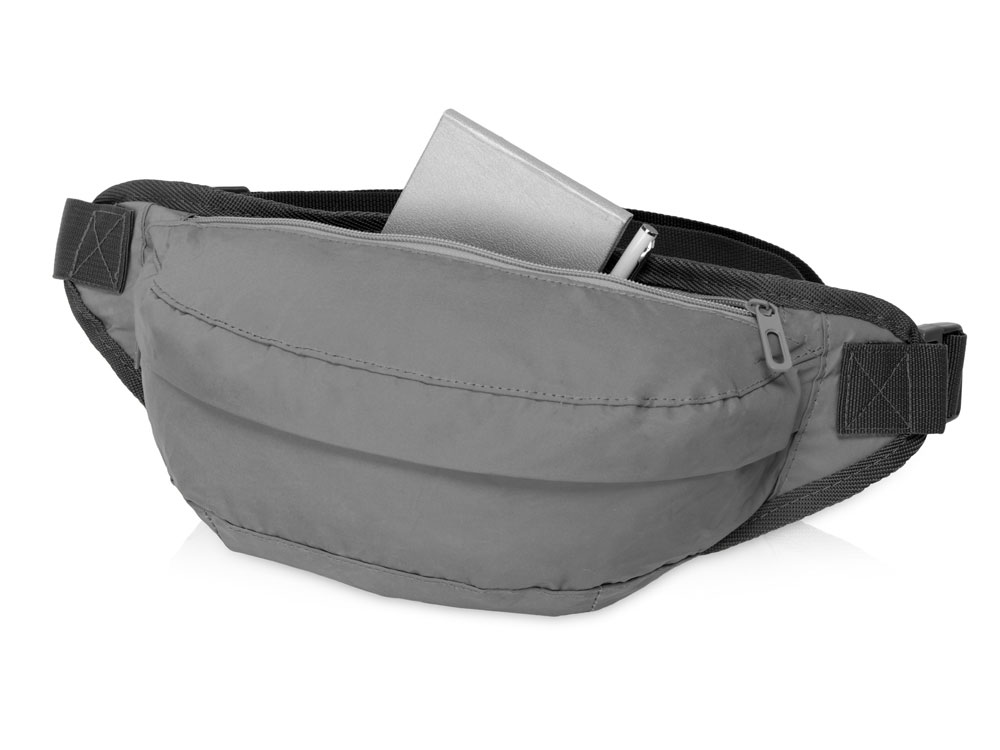 Вместительная поясная сумка увеличенного размера из светоотражающей ткани обеспечит дополнительную безопасность в темное время суток. Внутренний карман на молнии предназначен для хранения ценных вещей. Задняя часть сумки, прилегающая к телу, снабжена дышащей сеткой. Ремень 88 см регулируется по длине и позволяет носить сумку на талии и на груди.