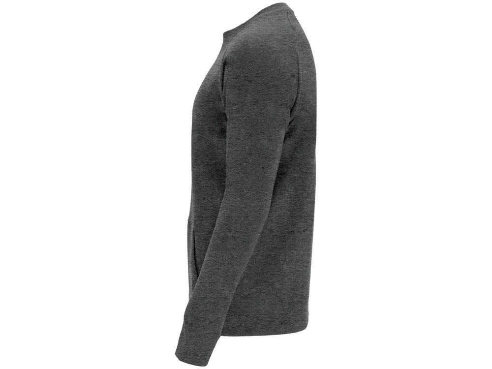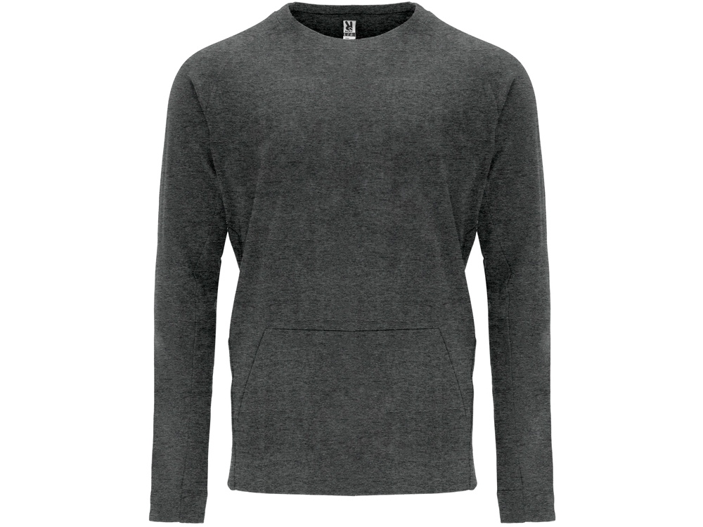 Свитшот с рукавом реглан. Горловина спинки и боковая часть манжет из риба 1х1. Карман кенгуру, диагональные боковые швы с наклонам к центру переда.