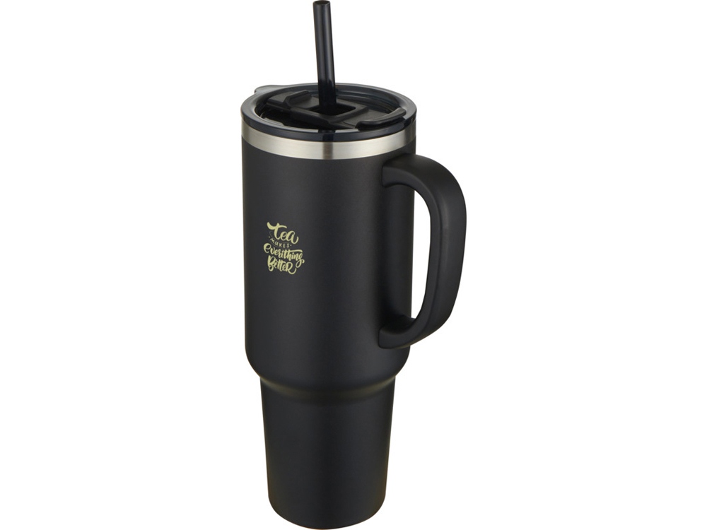Кружка с двойными стенками из меди, сертифицированной RCS, и вакуумной изоляцией, изготовлена из нержавеющей стали, 91% которой подверглось вторичной переработке, сохраняет напитки холодными в течение как минимум 24 часов. Имеет соломинку Tritan и функцию слайдера крышки для предотвращения проливания. Прижимная поворотная крышка из 100% переработанного пластика надежно удерживает соломинку на месте и может легко поворачиваться, открывая отверстие для напитка. Прочное внешнее порошковое покрытие. Объем: 1200 мл. Только ручная мойка. Recycled stainless steel.