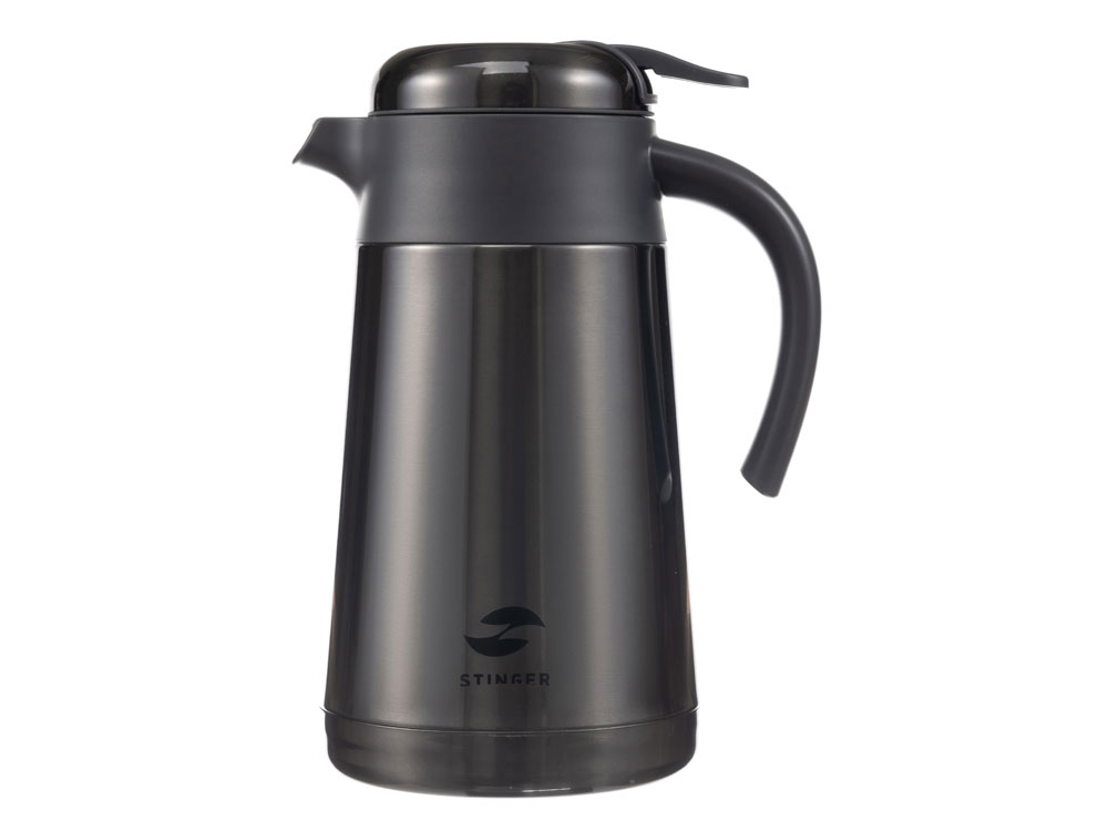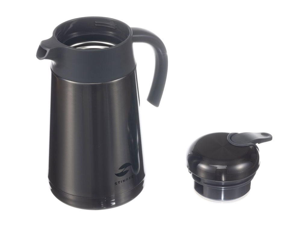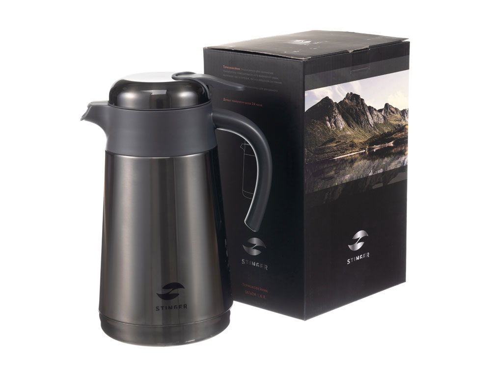ТЕРМОКОФЕЙНИК STINGER 1,6 л НАЗНАЧЕНИЕ Термокофейник STINGER предназначен для сохранения температуры помещаемых в него жидкостей (воды, напитков) как в горячем, так и в холодном состоянии. ХАРАКТЕРИСТИКИ Объём: 1,6 л Вес: 0,928 кг Время сохранения тепла: 24 часа Время сохранения холода: 24 часа Метод изоляции: вакуум Размеры • Высота – 25,9 см • Диаметр горлышка – 9,5 см • Диаметр дна – 13,6 см • Ширина (с учетом ручки и носика) – 18 см Тип крышки: винтовая, узкий носик Тип горлышка: широкое Тип подачи наполнения: рычаг подачи / блокировки воды Цвет: чёрный Материалы • Корпус: нержавеющая сталь, класс AISI 304 18/8 Stainless Steel • Колба: нержавеющая сталь, класс AISI 304 18/8Stainless Steel • Крышка: нержавеющая сталь, класс AISI 304 18/8Stainless Steel, пищевой пластик, не содержит бисфенол А (BPA free) • Прокладки-уплотнители: пищевой силикон ОСОБЕННОСТИ • Двойные стенки с вакуумной изоляцией отлично сохраняют температуру долгое время, гарантируют безопасность прикосновения к очень горячим и холодным напиткам. • Внешний и внутренний корпус из прочной пищевой нержавеющей стали AISI 304 18/8. • Пластиковые детали не содержат Бисфенол А (BPA FREE). • Герметичная винтовая крышка защищает от случайного открывания и проливания жидкости. • Простота в использовании: эргономичная ручка и удобный рычаг позволяют наливать напиток в одно касание и одной рукой – достаточно нажать на кнопку. • Носик плавной формы с широким изливом позволит быстро наполнить чашки или бокалы. • Широкая горловина для легкого наполнения и очистки. • Силиконовая накладка на дне предотвращает случайное скольжение и опрокидывание. • Идеально подходит для горячего кофе или чая, сохраняет вкус и аромат любимых напитков.