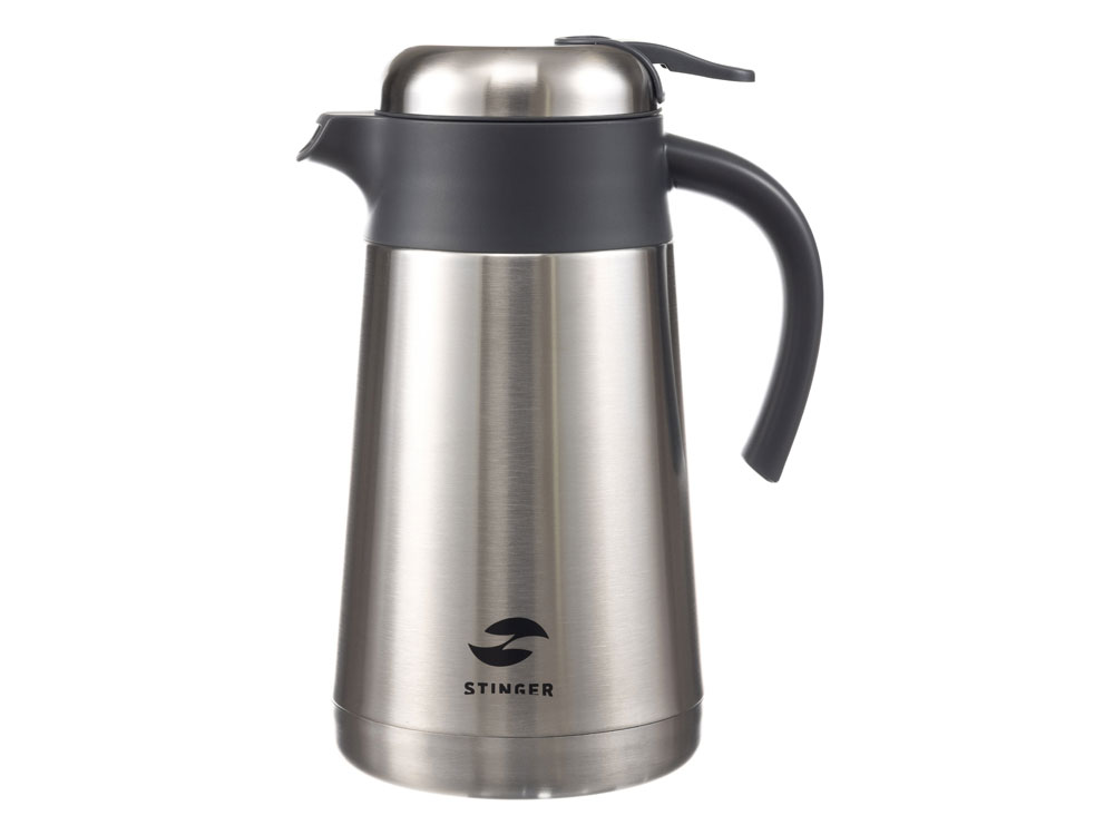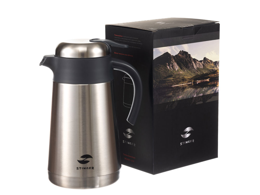 ТЕРМОКОФЕЙНИК STINGER 1,6 л НАЗНАЧЕНИЕ Термокофейник STINGER предназначен для сохранения температуры помещаемых в него жидкостей (воды, напитков) как в горячем, так и в холодном состоянии. ХАРАКТЕРИСТИКИ Объём: 1,6 л Вес: 0,928 кг Время сохранения тепла: 24 часа Время сохранения холода: 24 часа Метод изоляции: вакуум Размеры • Высота – 25,9 см • Диаметр горлышка – 9,5 см • Диаметр дна – 13,6 см • Ширина (с учетом ручки и носика) – 18 см Тип крышки: винтовая, узкий носик Тип горлышка: широкое Тип подачи наполнения: рычаг подачи / блокировки воды Цвет: серебристый Материалы • Корпус: нержавеющая сталь, класс AISI 304 18/8 Stainless Steel • Колба: нержавеющая сталь, класс AISI 304 18/8 Stainless Steel • Крышка: нержавеющая сталь, класс AISI 304 18/8 Stainless Steel, пищевой пластик, не содержит бисфенол А (BPA free) • Прокладки-уплотнители: пищевой силикон ОСОБЕННОСТИ • Двойные стенки с вакуумной изоляцией отлично сохраняют температуру долгое время, гарантируют безопасность прикосновения к очень горячим и холодным напиткам. • Внешний и внутренний корпус из прочной пищевой нержавеющей стали AISI 304 18/8. • Пластиковые детали не содержат Бисфенол А (BPA free). • Герметичная винтовая крышка защищает от случайного открывания и проливания жидкости. • Простота в использовании: эргономичная ручка и удобный рычаг позволяют наливать напиток в одно касание и одной рукой – достаточно нажать на кнопку. • Носик плавной формы с широким изливом позволит быстро наполнить чашки или бокалы. • Широкая горловина для легкого наполнения и очистки. • Силиконовая накладка на дне предотвращает случайное скольжение и опрокидывание. • Идеально подходит для горячего кофе или чая, сохраняет вкус и аромат любимых напитков.