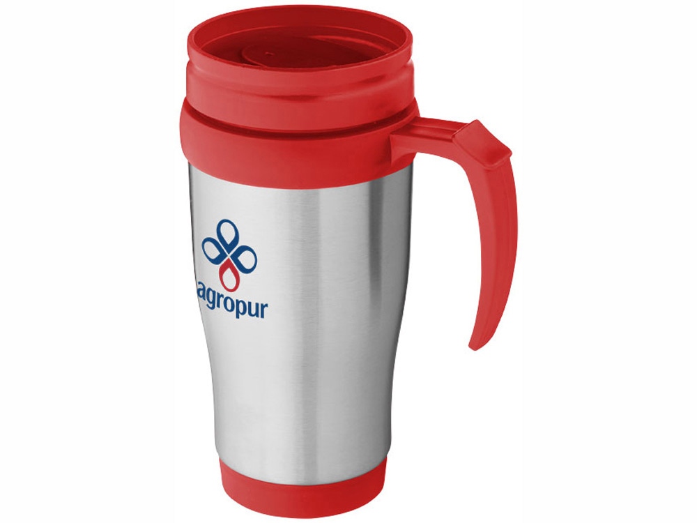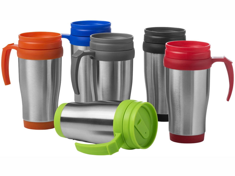 Термокружка Sanibel. Кружка с двойными стенками со съемной крышкой и открывающимся отверстием для питья. Объем – 330 мл. Наружная поверхность из нержавеющей стали, внутренняя поверхность из пластика. Без БФА.