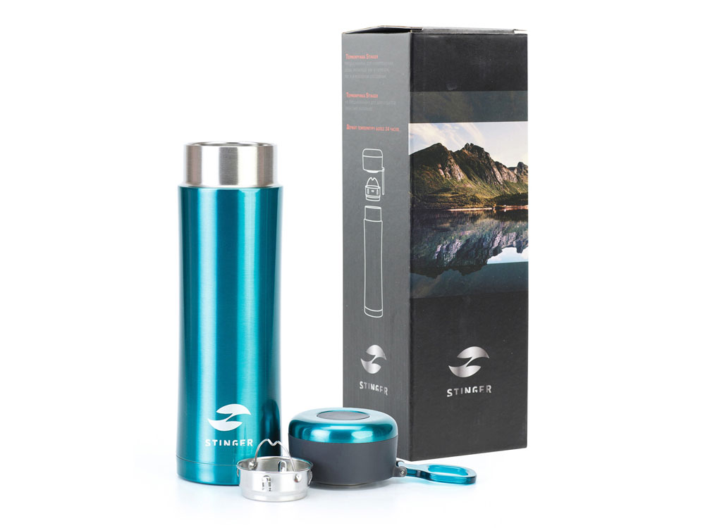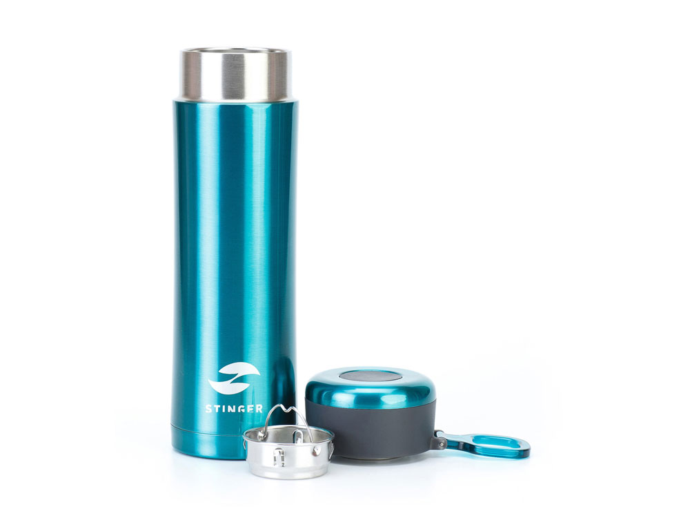 ТЕРМОКРУЖКА STINGER 0,42 Л СВОЙСТВА: Тип термоса: для горячих и холодных напитков Материал корпуса: двухслойная нержавеющая пищевая сталь 18/8 Тип крышки: закручивающаяся Материал крышки: пластиковая без бисфенола А (BPA free) Объём термоса: 0,42 л Размер термоса: 7,5 х 6,9 х 22,2 см Вес термоса: 346 г Цвет: изумрудный металлик ХАРАКТЕРИСТИКИ: Сохраняет температуру: Горячий напиток: через 6 часов температура наполняемой жидкости 71℃ Холодный напиток: через 6 часов температура наполняемой жидкости 7,5 ℃ ОСОБЕННОСТИ: Ситечко для заварки чая или кофе Кольцо для удобства переноски Подходит под любые автомобильные подстаканники