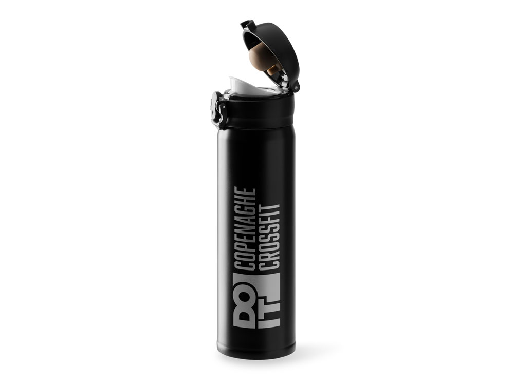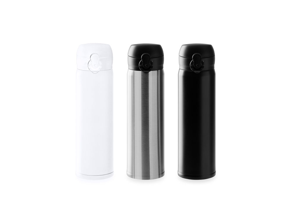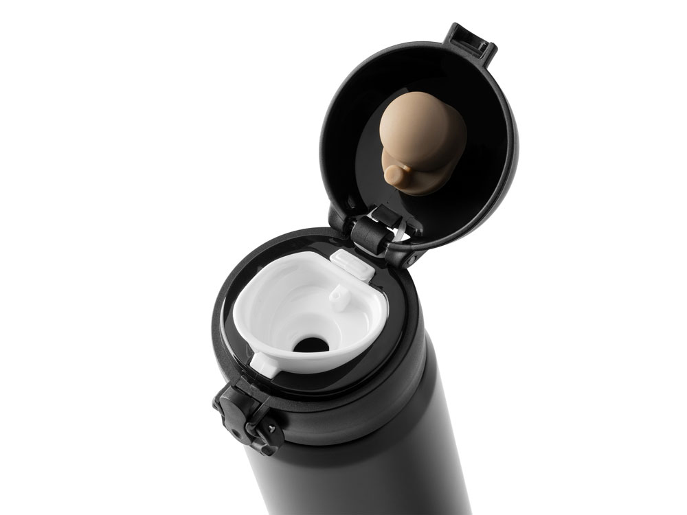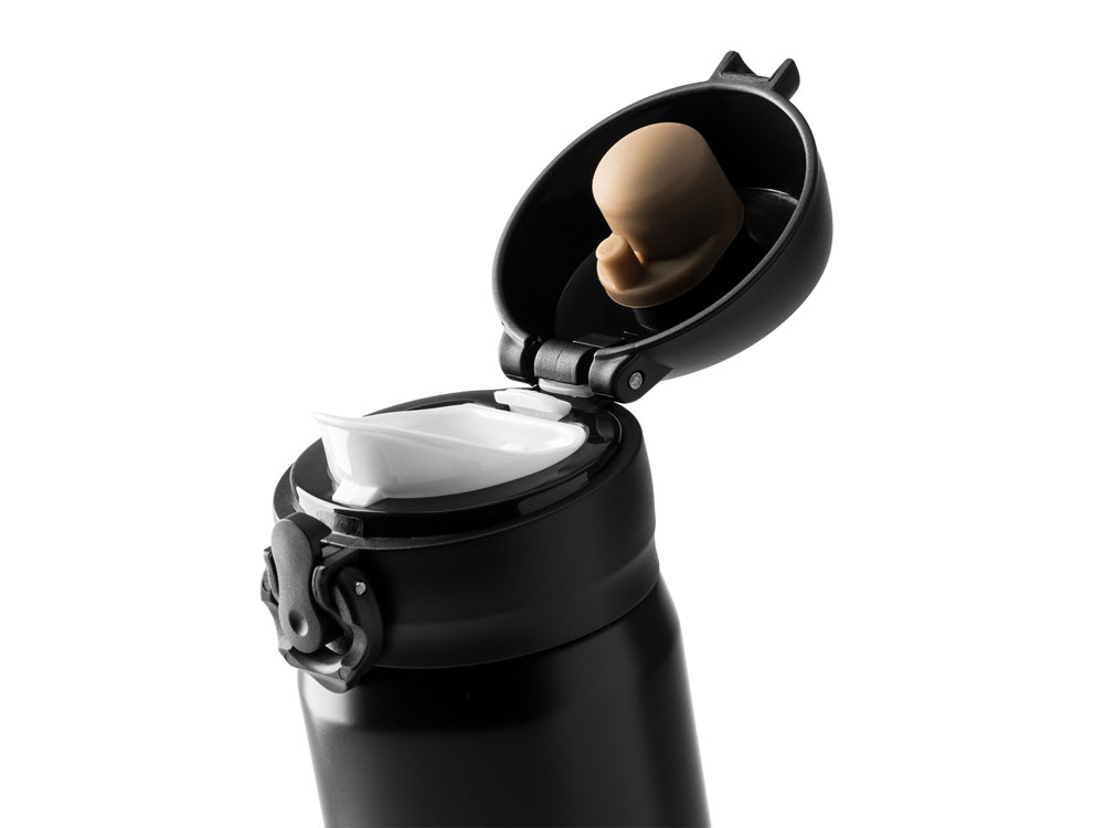 Термос с двойными стенками из нержавеющей стали 304. Кнопка открытия с предохранителем. Объем 450 мл.
