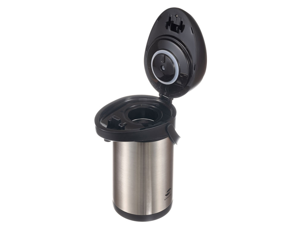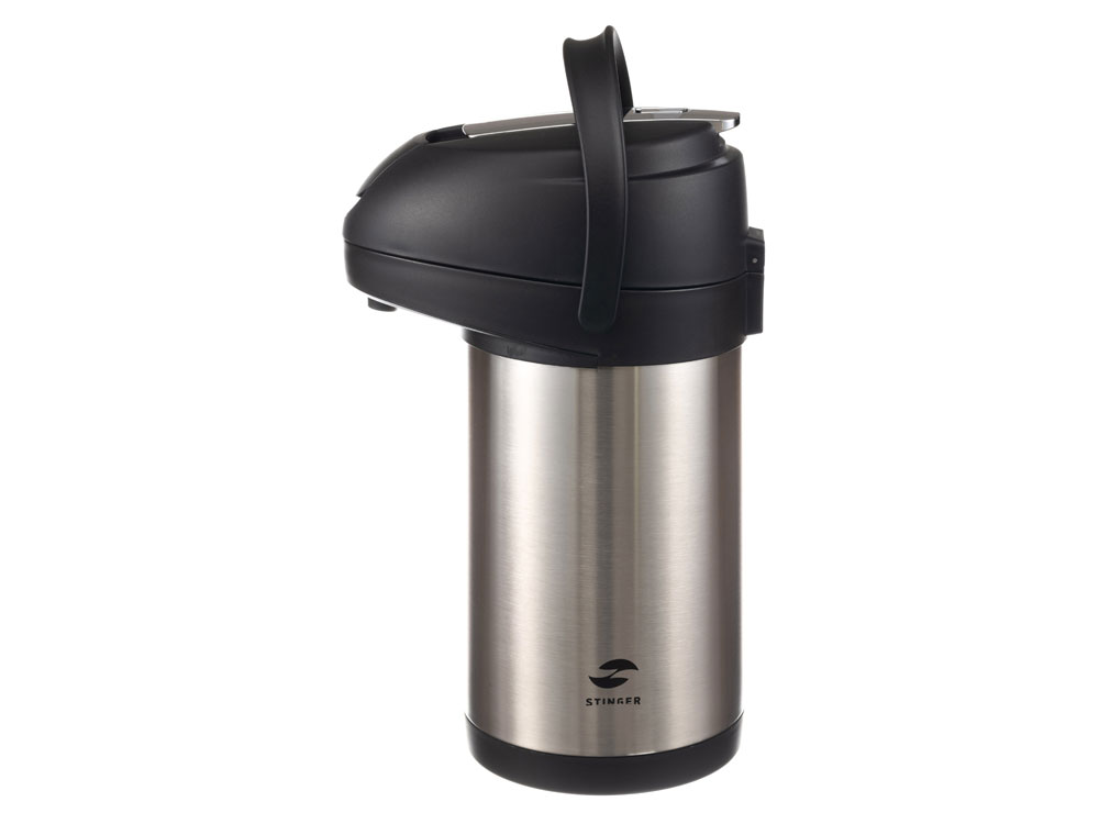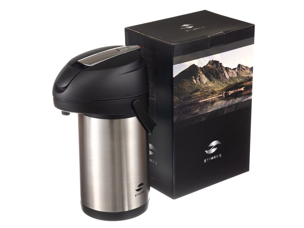 ТЕРМОС С ПОМПОЙ STINGER 3 л НАЗНАЧЕНИЕ Термос с ручной помпой Stinger предназначен для сохранения температуры помещаемых в него жидкостей (воды, напитков) как в горячем, так и в холодном состоянии. ХАРАКТЕРИСТИКИ Объём: 3 л Вес: 1,837 кг Время сохранения тепла: 24 часа Время сохранения холода: 24 часа Метод изоляции: вакуум Размеры • Высота – 37,2 см • Диаметр горлышка – 7,5 см • Диаметр дна – 16 см • Ширина (с учетом ручки) – 24,4 см Тип крышки: съёмная крышка-пробка Тип горлышка: широкое Тип подачи наполнения: помпа, рычаг подачи / блокировки воды Цвет: серебристый Материалы • Корпус: нержавеющая сталь, класс AISI 304 18/8 Stainless Steel • Колба: нержавеющая сталь, класс AISI 304 18/8Stainless Steel • Крышка: пищевой пластик, не содержит бисфенол А (BPA free) • Прокладки-уплотнители: пищевой силикон ОСОБЕННОСТИ • Двойные стенки с вакуумной изоляцией отлично сохраняют температуру долгое время, гарантируют безопасность прикосновения к очень горячим и холодным напиткам. • Внешний и внутренний корпус из прочной пищевой нержавеющей стали AISI 304 18/8. • Пластиковые детали не содержат Бисфенол А (BPA FREE). • Съемная крышка и широкая горловина для легкого наполнения и очистки. • Простота в использовании: помповый насос и удобный рычаг позволяют наливать напиток в одно касание и одной рукой – достаточно нажать на кнопку. • Эргономичная ручка для удобной переноски. • Основание вращается на 360 градусов. • Идеально сохраняет вкус и аромат любимых напитков.