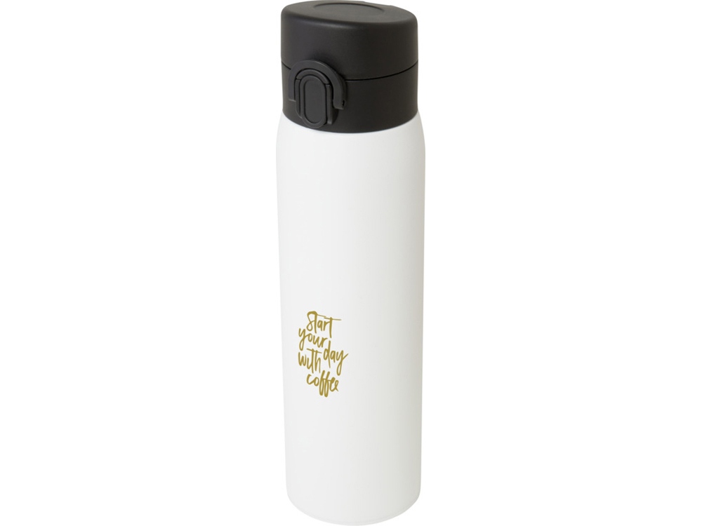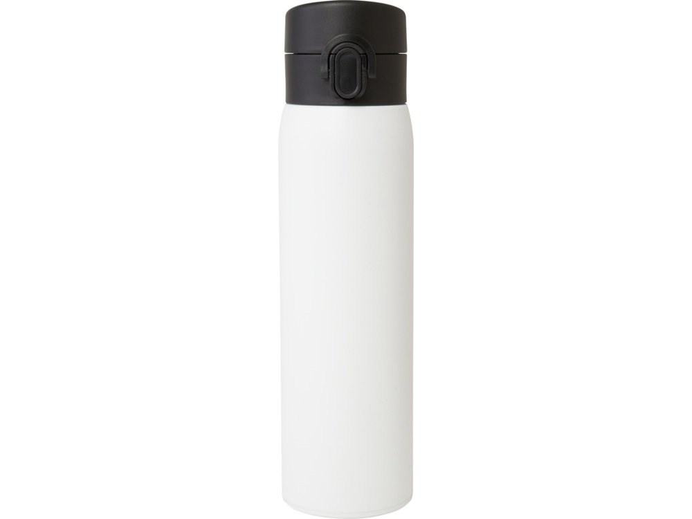Стильная фляга-термос из переработанной нержавеющей стали, сертифицированная RCS, с простым механизмом открытия с помощью кнопки. Фляга герметична, а благодаря медной вакуумной изоляции напитки будут сохраняться горячими или холодными в течение нескольких часов. Объем составляет 450 мл. Поставляется в подарочной коробке из переработанного картона. Recycled stainless steel, Recycled PP Plastic. Packaging: FSC Mix Credit P5.1 CU-COC-877277.