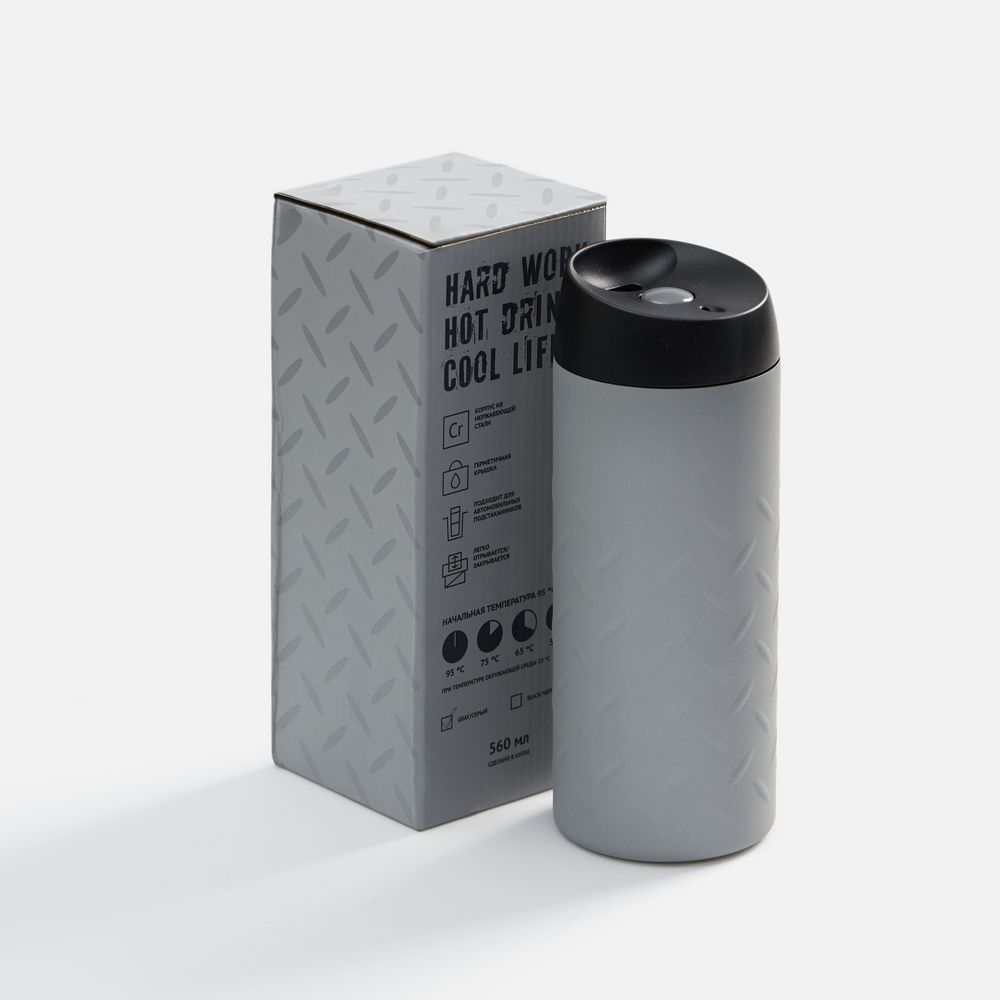 Термостакан Hard Work, серый купить оптом и в розницу с нанесением логотипа в Уфе