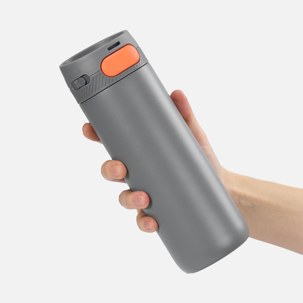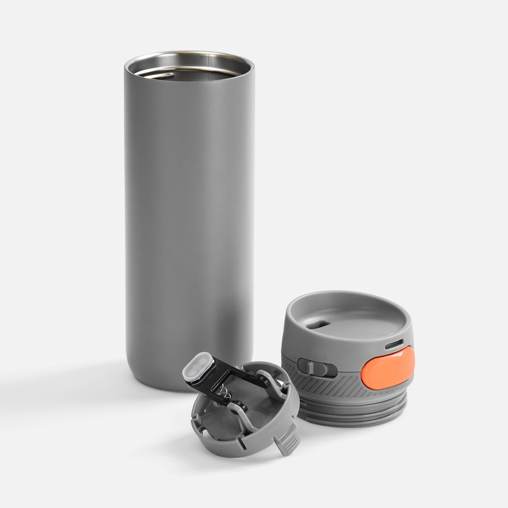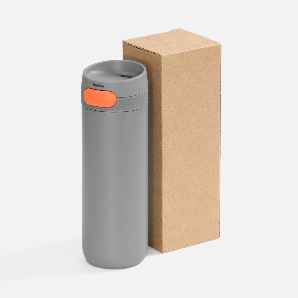Термостакан X1 с цветной кнопкой, серый с оранжевым
