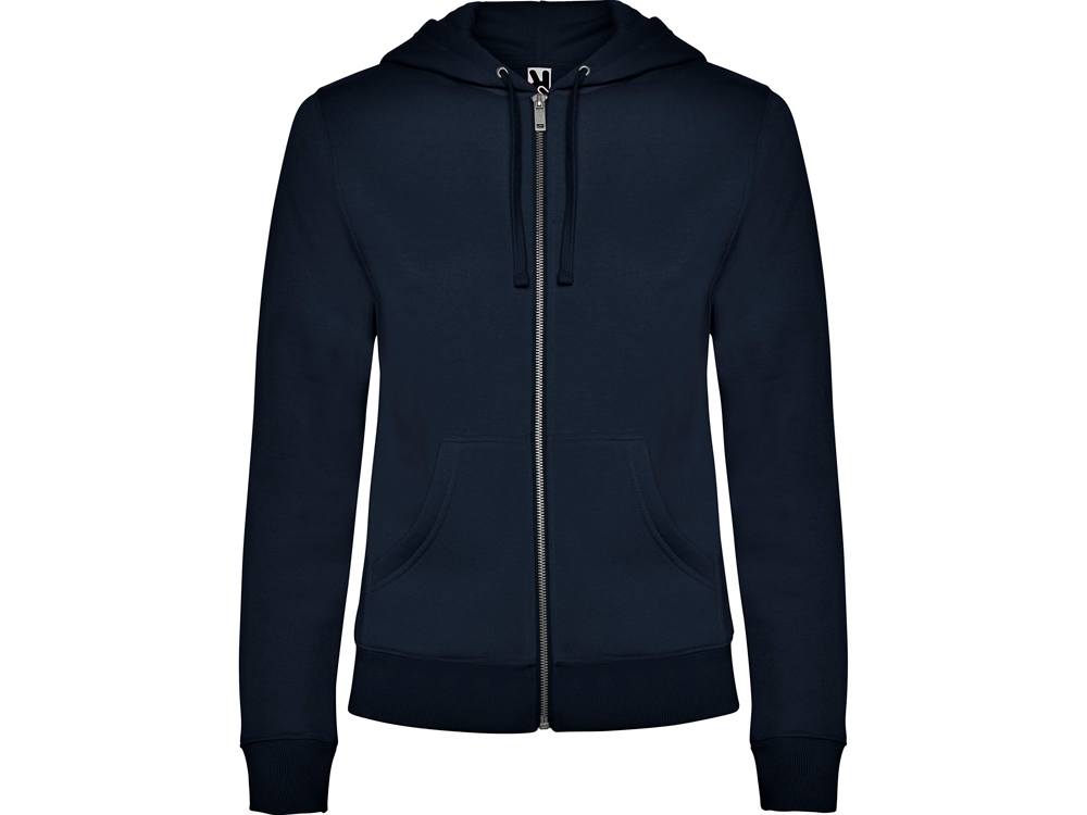 Женская толстовка на молнии с капюшоном на подкладке в тон. - Металлическая центральная молния. - Карман-кенгуру. - Усиленные закрытые внутренние швы горловины. - Манжеты рукавов и низ из риба 2 x 2. - Приталенный крой.