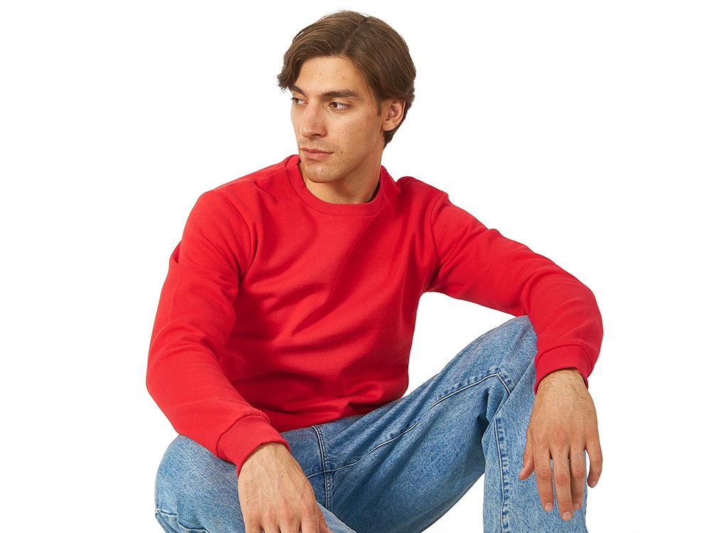 Толстовка (свитшот) из плотного футера с мягким начесом, с небольшим добавлением полиэстера. Удобная и практичная модель, подходит для прогулок по городу, активного отдыха, путешествий. • Прямой силуэт. • Долго сохраняет форму и не мнется благодаря небольшому содержанию полиэстера. • Гигроскопичное волокно, обладает хорошими гигиеническими свойствами. • Низ толстовки, рукавов и горловины обработаны рибом (резинкой) 1x1.