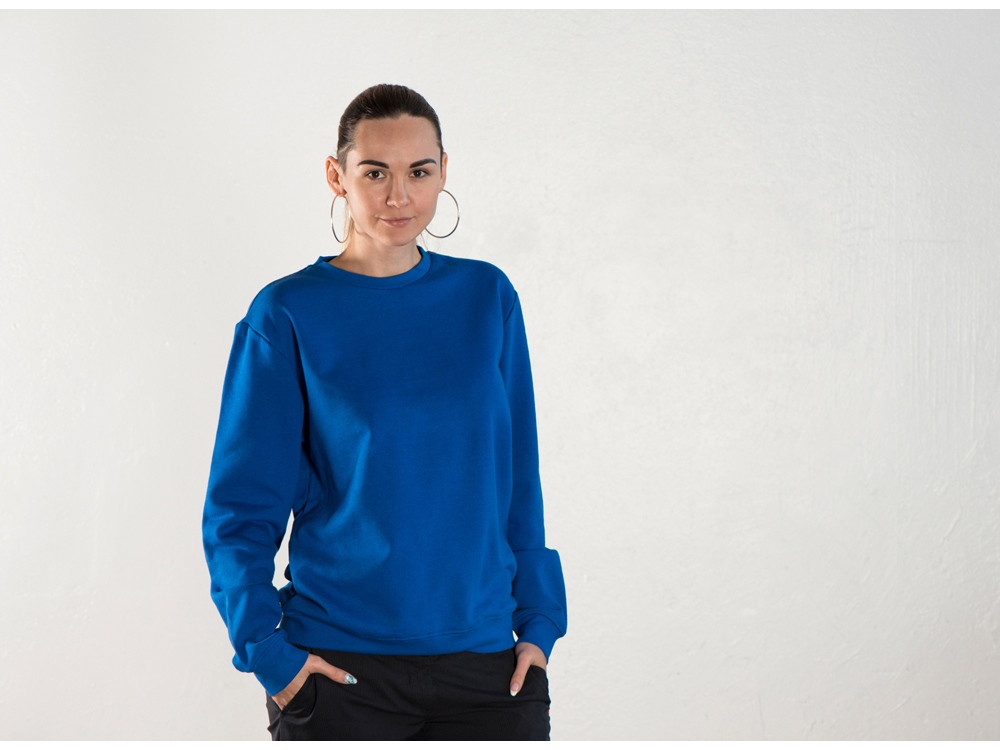 Толстовка (свитшот) из плотного футера с мягким начесом, с небольшим добавлением полиэстера. Удобная и практичная модель, подходит для прогулок по городу, активного отдыха, путешествий. • Прямой силуэт. • Долго сохраняет форму и не мнется благодаря небольшому содержанию полиэстера. • Гигроскопичное волокно, обладает хорошими гигиеническими свойствами. • Низ толстовки, рукавов и горловины обработаны рибом (резинкой) 1x1.