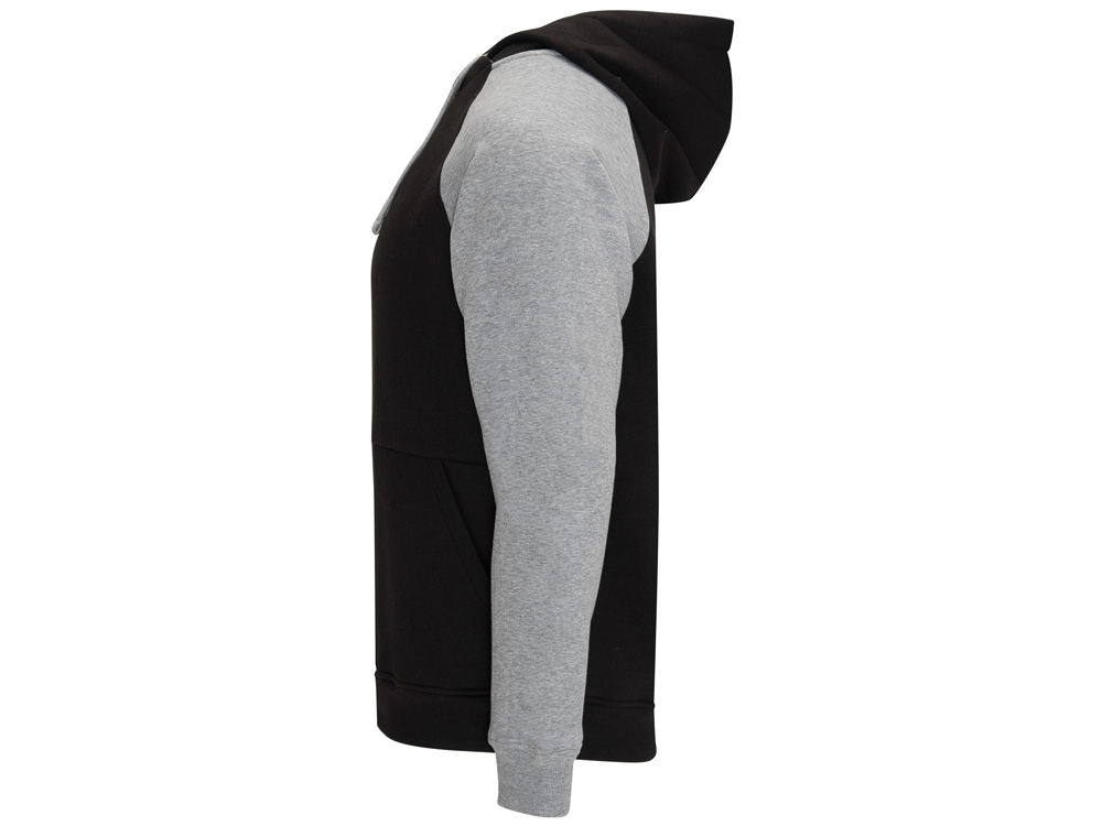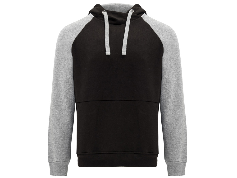 Худи с контрастным рукавом реглан. Капюшон с запахом, с контрастной подкладкой и шнурком. На полочке карман кенгуру. Манжеты рукавов и низ изделия из риба 1х1. В ассортименте представлена аналогичная детская модель Badet