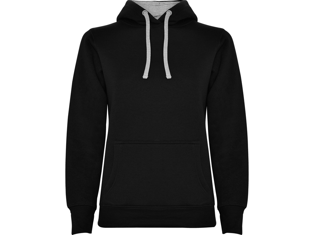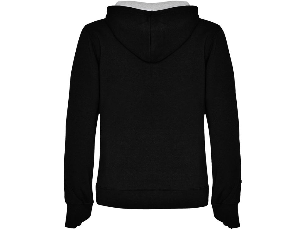 Худи с капюшоном и шнурками. Отделка горловины спинки внутри тесьмой, Риб 1х1 по низу изделия и манжетам. Карман кенгуру. На манжетах вырез под большой палец На части цветомоделей подкладка капюшона и шнурки контрастного цвета.