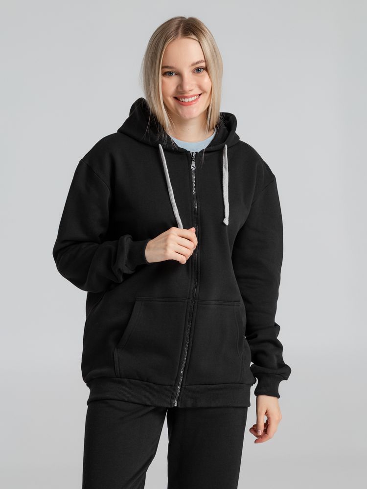 Толстовка на молнии с капюшоном Unit Siverga Heavy, черная купить оптом и в розницу с нанесением логотипа в Уфе