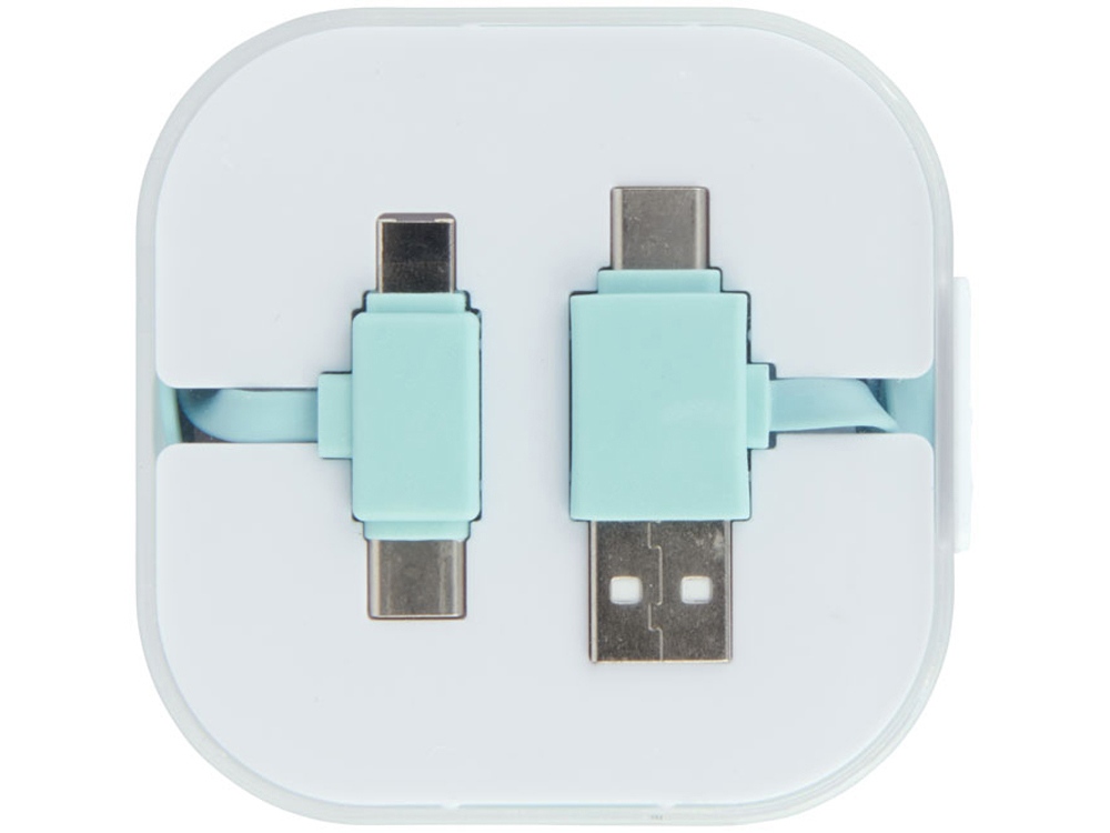 Кабель для зарядки 4-в-1 двух типов C: 1 USB типа A и 2-в-1 двухконтактных наконечников для устройств Apple iOS и Android. Используются как зарядка, так и передача данных. Чтобы зарядить устройства Apple, поместите кабель стороной, у которой нет контактов в устройстве, чтобы зарядить устройства Android, поместите кабель со стороны, в которой есть контакты в устройстве.