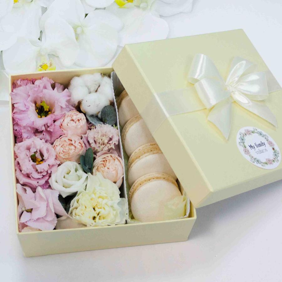 | цветы - роза Бомбастик, эустома, диантус, эвкалипт; | |