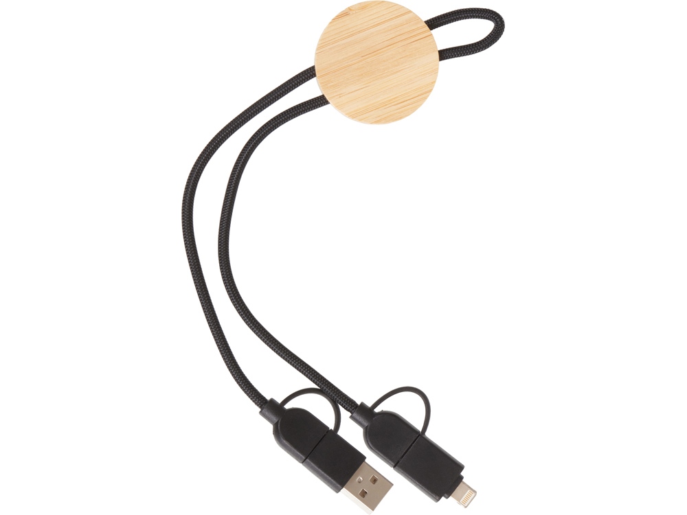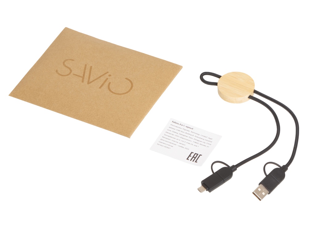 Зарядный кабель Acalypha — это экологичное и функциональное решение для быстрой зарядки устройств. Разработанный с упором на устойчивость и стиль, этот универсальный кабель сочетает в себе современные технологии и заботу об окружающей среде. Универсальное подключение: Кабель оснащён всеми популярными типами разъёмов — USB-C, USB-A, Lightning — что позволяет использовать его с широким спектром устройств: смартфонами, планшетами, наушниками, портативными колонками и другими гаджетами. • Мощность до 25 Вт: Поддерживает высокоскоростную зарядку (до 25 Вт), обеспечивая быстрое восстановление энергии даже для мощных устройств без потери качества. • Экологичный дизайн: Изготовлен из переработанных материалов: - ПЭТ (полиэтилентерефталат) — из вторсырья пластиковых бутылок; - ТПЕ (термопластичный эластомер) — безопасный и устойчивый материал, повторно использованный для оболочки кабеля. С каждым использованием вы делаете шаг к снижению пластикового загрязнения. • Дизайн с натуральными элементами: Кабель может быть использован как брелок, корпус сделан из натурального бамбука, также имеется петелька для крепления к чему-либо. Бамбук создает привлекательность и ощущение тепла и натуральности. • Упаковка из переработанной бумаги: Комплект поставляется в минималистичной упаковке из переработанного картона с логотипом SAViO, подчёркивающей экологическую направленность бренда.