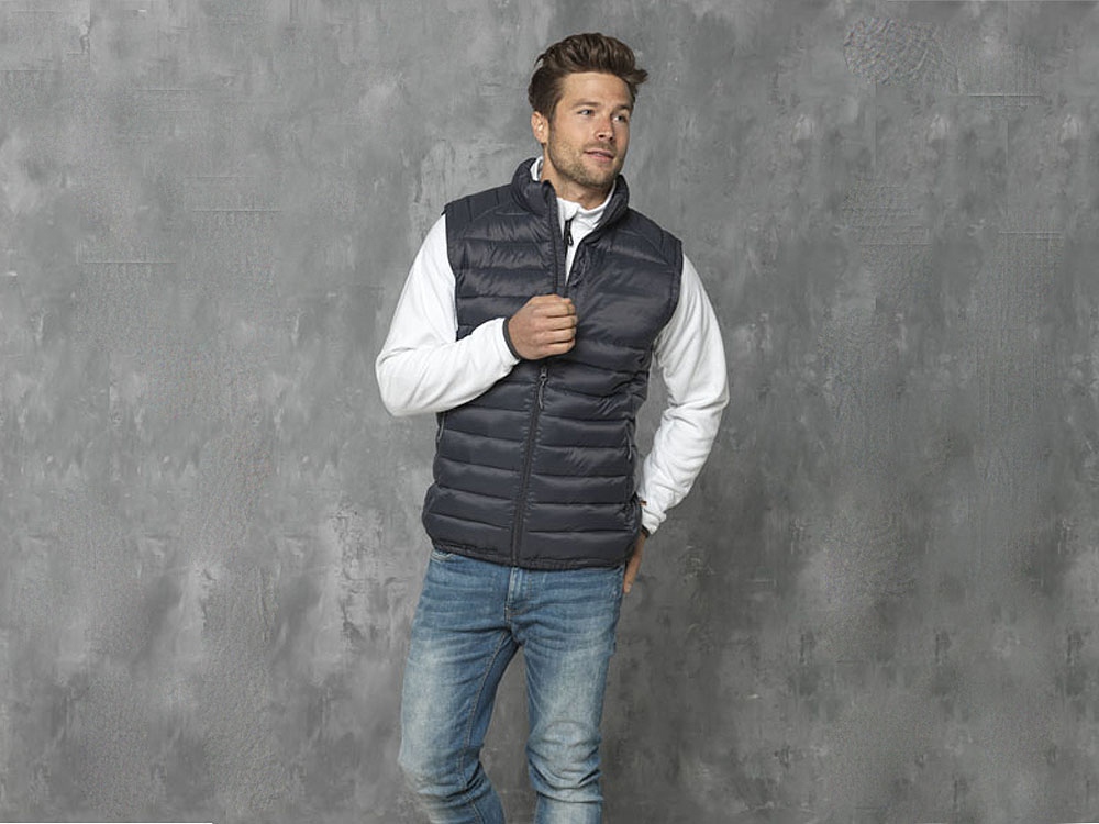 Утепленный жилет для мужчин Pallas. Отрезной-отрывной ярлык для комфорта. Внутренний противоветровой клапан и защита подбородка. Нагрудный карман на молнии. Карманы для рук на молнии. Манжеты-резинки по низу изделия и на рукавах. Молния по центру с отражающей лентой. Молния легкого скольжения. Петелька-вешалка. Тканый 380Т с пропиткой Cire 100% Нейлон, 38 g/m2, Padding/filling, fake down insulation100% Полиэстер.