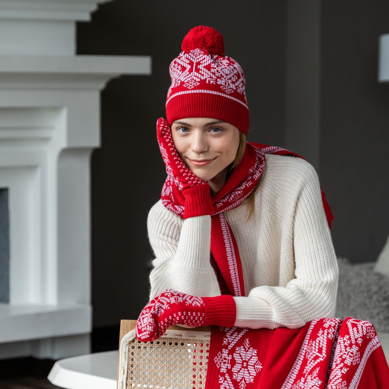 • Возможно в комплект к варежкам приобрести идентичные шапку и шарф