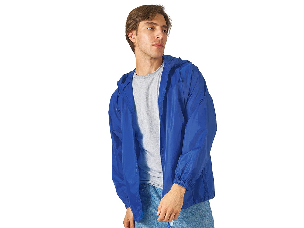Мужская ветровка с капюшоном без подкладки застегивается на молнию, манжеты на резинке, нижняя часть регулируется с помощью шнурка. Ветровка Promo очень легкая, убирается в удобный чехол и почти не занимает места – она идеальна в качестве сувенира на мероприятиях, проходящих на улице в теплое время года. Доступно четыре расцветки.