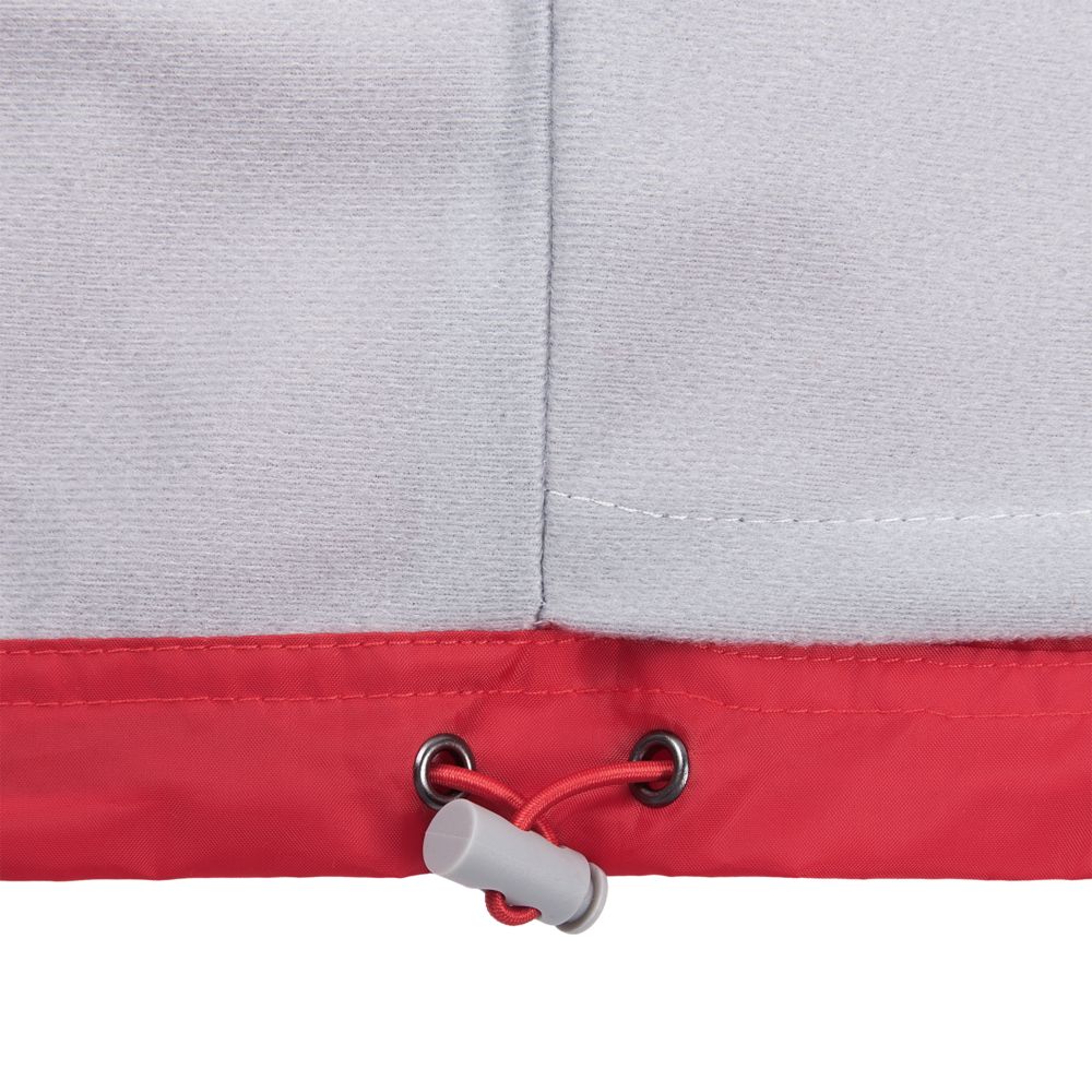 Капюшон убирается в воротник. 2 наружных кармана с клапанами, 1 внутренний карман, эластичные манжеты, утягивающий шнур по низу. Плечевые швы смещены вперед, чтобы уменьшить влагопроницаемость. Для удобства нанесения логотипа подкладка в нижней части не закреплена.