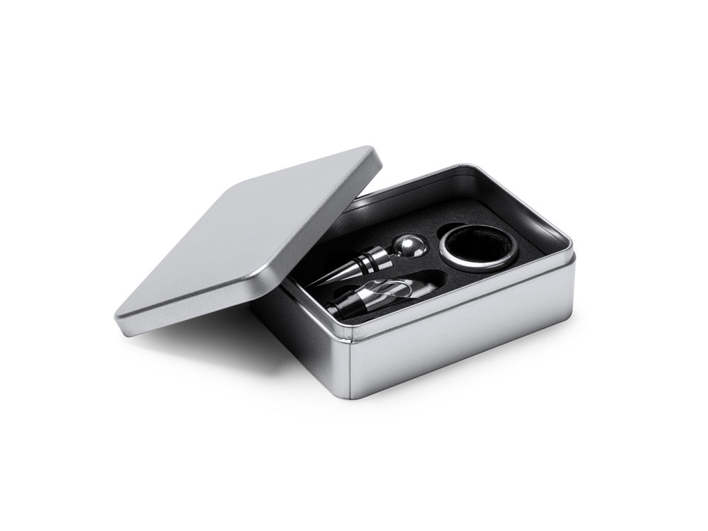 Винный набор с аксессуарами из нержавеющей стали, штопор с резаком для фольги, каплеуловитель, пробка и дозатор.