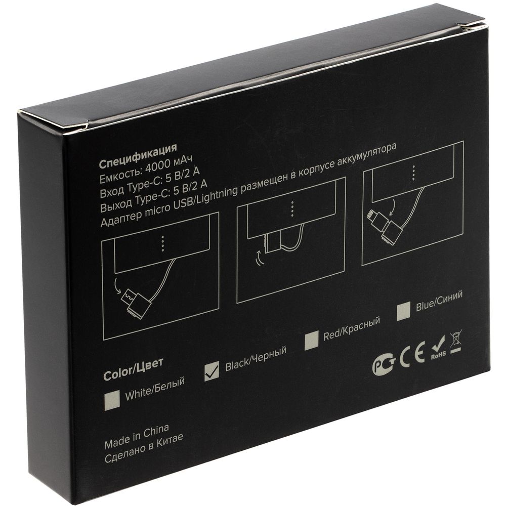 Внешний аккумулятор Easy Trick Comfort 4000 мАч, черный купить оптом и в розницу с нанесением логотипа в Уфе