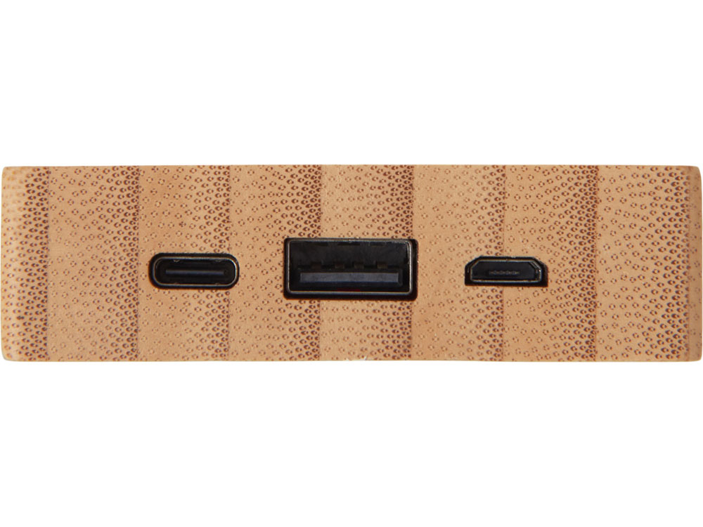 Внешний аккумулятор ёмкостью 10 000 мАч, созданный для тех, кто ценит стиль, функциональность и заботу о природе. Корпус устройства изготовлен из натурального бамбука и переработанного ABS-пластика — это не только придаёт ему уникальный эстетичный вид, но и снижает экологический след. С одной стороны — солнечная панель, позволяющая подзаряжать устройство от солнца, с другой — панель с возможностью нанесения светящегося логотипа компании или бренда. Идеальное решение для путешественников, офисных сотрудников и корпоративных подарков — технологично, стильно и ответственно. - Заряжайтесь от солнца — встроенная солнечная панель для автономного пополнения энергии - Экологичный дизайн — корпус из натурального бамбука и переработанного пластика - Яркий брендинг — логотип с подсветкой - Ёмкость 10 000 мАч — зарядит смартфон 2–3 раза за один цикл - Идеальный корпоративный подарок — стильный, полезный и запоминающийся