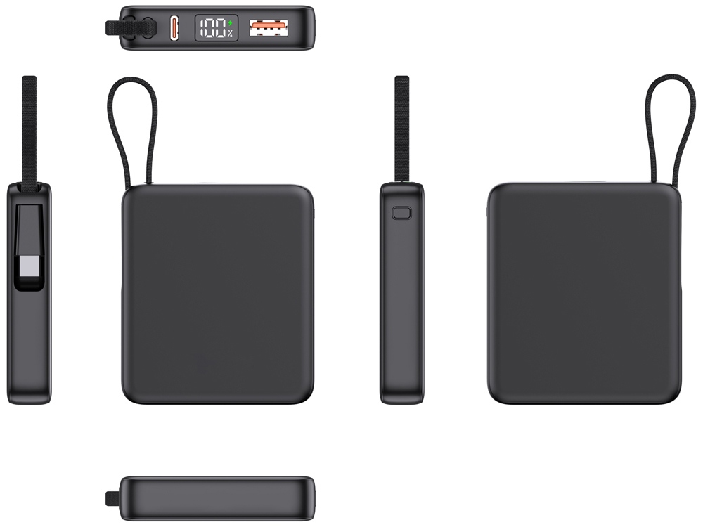 Миниатюрный и функциональный повербанк – идеальное сочетание компактности, технологичности и стиля. Этот современный повербанк, помещающийся в ладонь, станет незаменимым аксессуаром для тех, кто ценит удобство и стиль. Благодаря продуманному дизайну и инновационным решениям, он не только экономит место, но и подчеркивает индивидуальность своего владельца. А возможность брендирования светящимся лого делает его мощным инструментом для рекламы вашего бизнеса. Уникальные преимущества: - Встроенный кабель Type-C и он же петелька для переноски: Современный стандарт Type-C, подходящий для зарядки всех последних популярных смартфонов, включая iPhone. Кабель также выполняет роль удобной петельки - Классический разъем USB-A: Для зарядки устройств без Type-C – универсальное решение для любых гаджетов. - Светящийся логотип: Привлекает внимание и становится ярким элементом вашей рекламной кампании. - Цифровой дисплей уровня заряда: Позволяет точно контролировать остаток энергии - Матовое софт-тач покрытие: Удобное и приятное на ощупь, оно предотвращает скольжение и придает повербанку премиальный внешний вид. Этот повербанк – идеальный выбор для тех, кто ценит компактность, функциональность и стиль. Он не занимает много места, но выделяется своим дизайном и ярким лого. Встроенный кабель избавляет от необходимости носить дополнительные провода, а универсальные разъемы позволяют заряжать практически любой современный смартфон или гаджет.