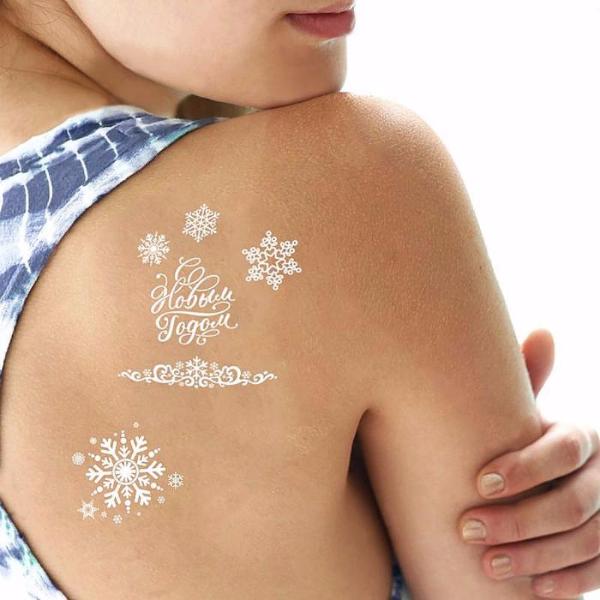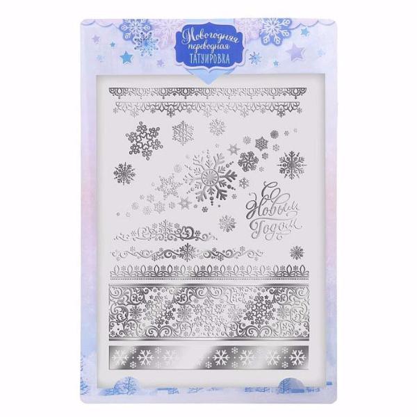Временная татуировка С Новым годом поможет вам выделиться на новогодней вечеринке. Набор переводных тату в серебряной гамме содержит несколько картинок с новогодними и просто зимними рисунками, которые подчеркнут индивидуальность вашего стиля и подарят вам праздничное настроение.