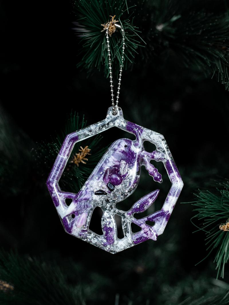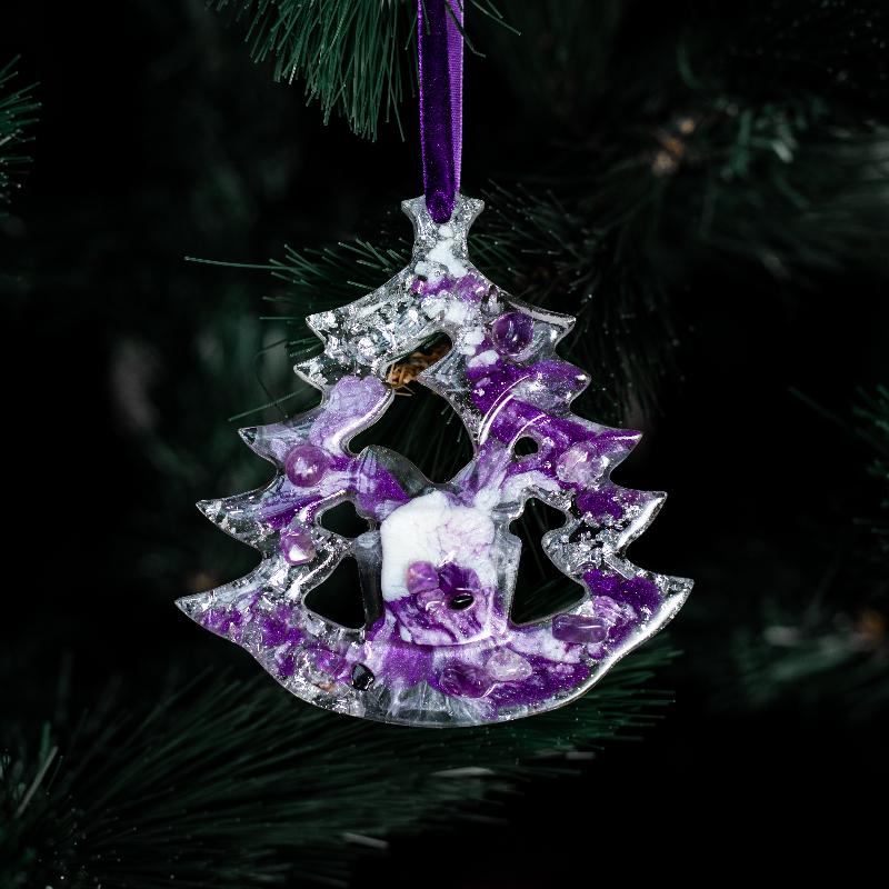 | Материалы | ювелирная смола, аметист, природные пигменты |