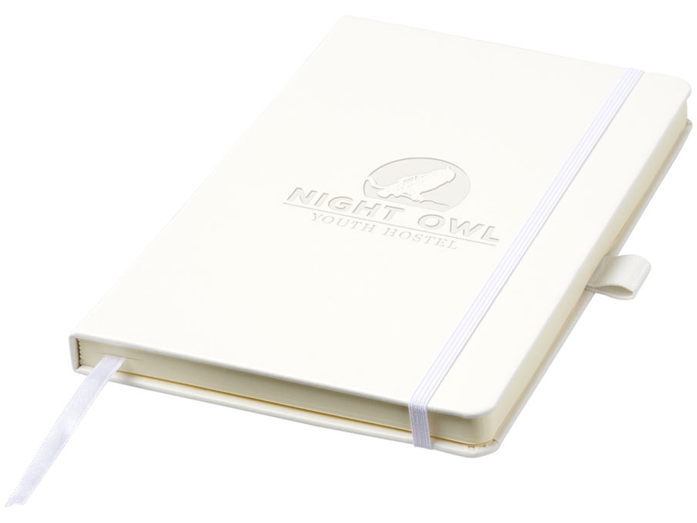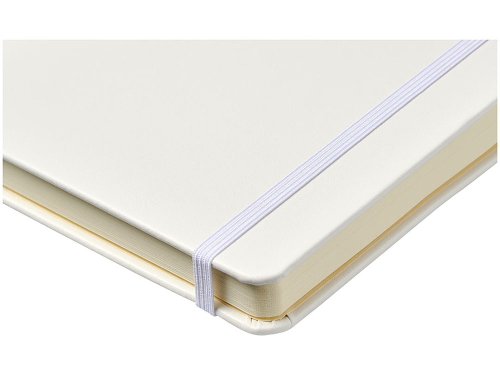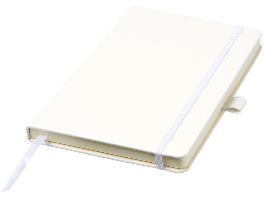 Записная книжка Nova формата A5 с переплетом. Записная книжка из искусственной кожи формата A5 (14,2 x 21,4 см) с резинкой, лентой-закладкой, петлей для ручки и задним карманом. Состоит из 96 листов линованной бумаги кремового цвета плотностью 80 г/м2 и поставляется в белом футляре Journalbook. Бумага, имитирующая кожу.