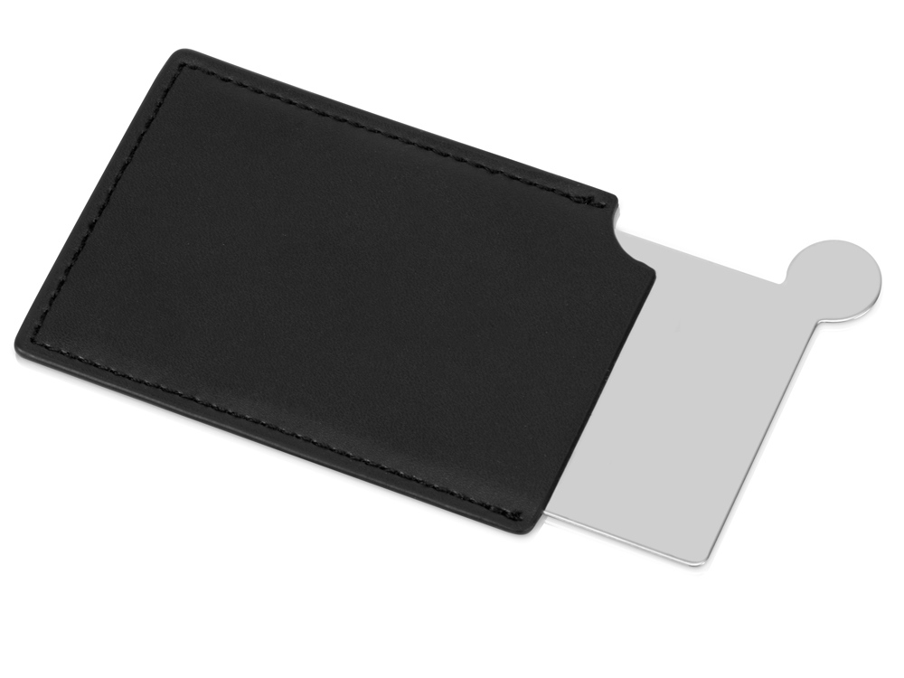 Оригинальное зеркало в чехле из искусственной кожи толщиной всего 3 мм легко поместится не только в сумке, но и в кармане или небольшом органайзере. Выполнено из металлического сплава и отполировано. Такое зеркало никогда не разобьётся. Надпись или логотип можно нанести как на чехле, так и на самом зеркале.