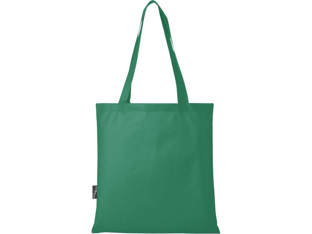 Большая эко-сумка Zeus из переработанных материалов, сертифицированных GRS, изготовленная из прочного и устойчивого к разрыву переработанного PET-пластика, является идеальным и более экологичным вариантом для ярмарок или конференций. Тонкий дизайн делает эту модель элегантной и подходящей для ношения легких предметов, например, блокнота и ручки. Ручки имеют длину 29 см, поэтому эко-сумку легко носить через плечо. Прочность до 5 кг. GRS certified recycled polyester, 80 g/m2.