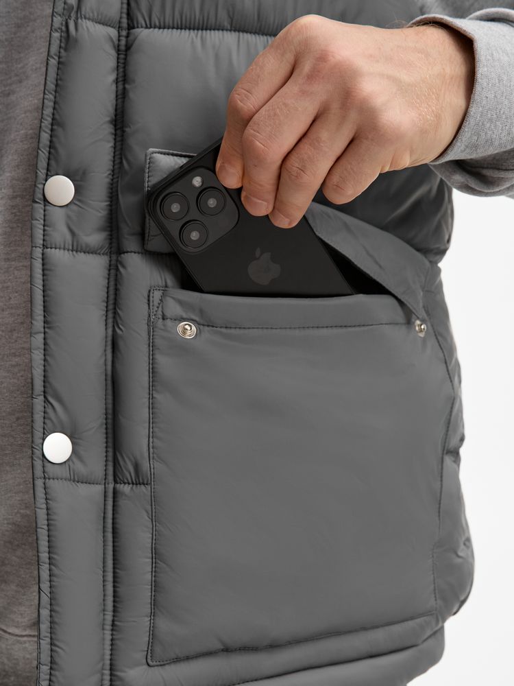 | Материал | верх - нейлон 100%, плотность 280T, таффета; утеплитель - полиэстер 100%, искусственный пух, плотность 300 г/м²; подкладка - полиэстер 100%, плотность 230T, таффета |