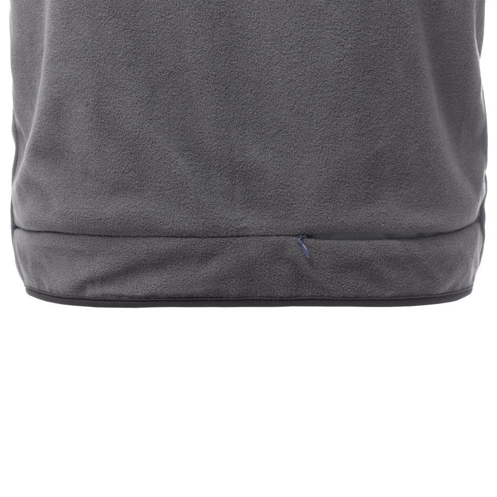 Сверху нейлон с водостойкой пропиткой, внутри - флис. А можно и наоборот. Жилет ведь двусторонний. Для удобства нанесения логотипа можно частично отстегнуть подкладку.