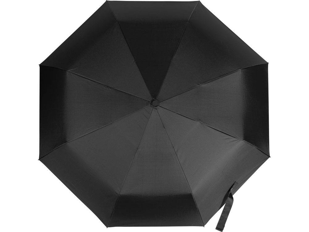 Купол зонта выполнен из переработанного пластика. Гибкие спицы из стекловолокна делают зонт стойким к порывам ветра. Удобная ручка софт тач. Фиксирующая купол застежка на липучке шириной 3 см - дополнительная опция для нанесения вашего логотипа.