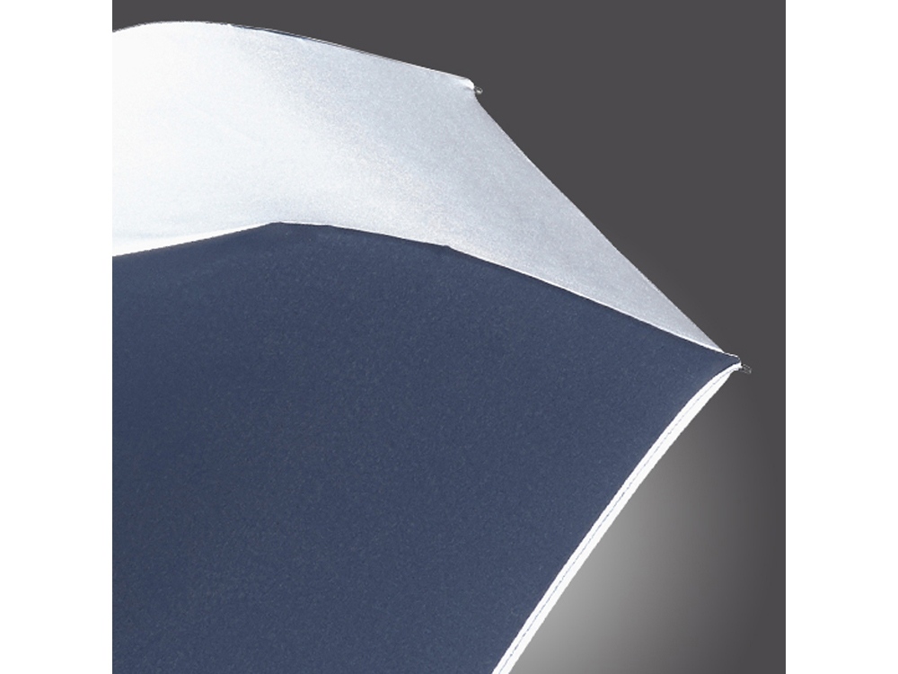 У этого зонта на двух диагональных клиньях и на отделке чехла имеется светоотражающее нанесение. Это обеспечивает дополнительную защиту в темное время суток. Мягкая пластиковая ручка с удобной кнопкой открытия и защита от порывов ветра делают зонт незаменимым аксессуаром.