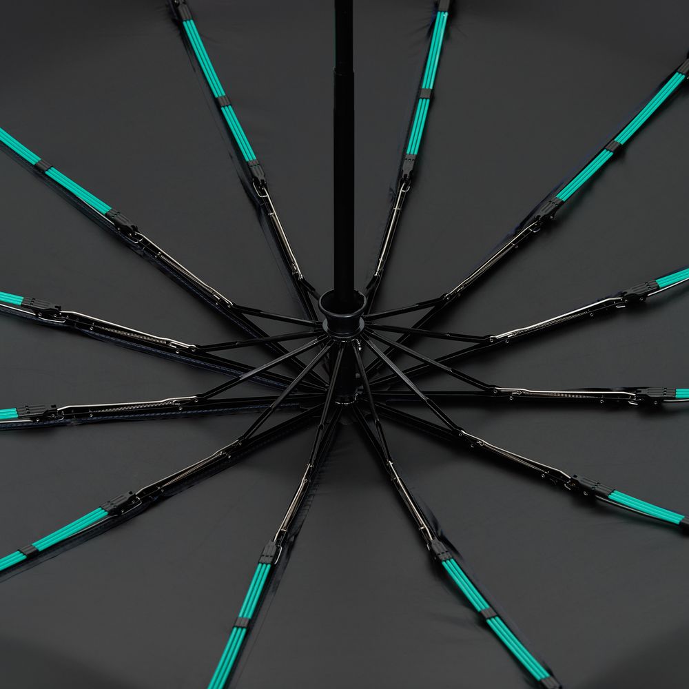 Зонт Ribstar отвечает абсолютной устойчивостью на любую непогоду. 12 усиленных тройных спиц — это не просто каркас, а целая инженерная система, которая противостоит шквальному ветру. УФ-покрытие на внутренней стороне купола позволяет с пользой задействовать зонт не только во время дождя, но и под палящим солнцем.