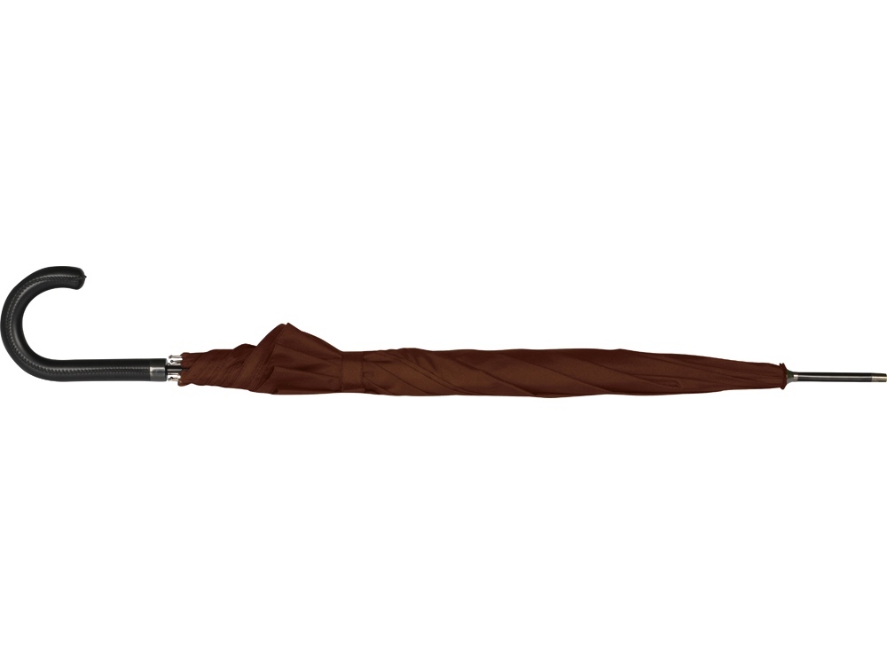 Стильный зонт-трость с прочным металлическим корпусом и приятной на ощупь ручкой с покрытием из кожзаменителя станет превосходным дополнением вашего образа и отлично защитит во время непогоды.